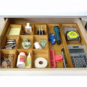 The Natural Wood Junk Drawer Organizer is the perfect solution for that out-of-control mess. With lots of compartments, and our exclusive Divide-A-Space partition, you have the flexibility to arrange and rearrange spaces as necessary. Our patented Loc-A-Ball system allows you to adjust the organizer to the right size, and then lock it into place. Made of natural hardwood and lacquered finish-this organizer helps you achieve the high-end look of custom built-ins. The organizer is guaranteed to fit any kitchen drawer, and is great for your desk, office-anywhere around the home.