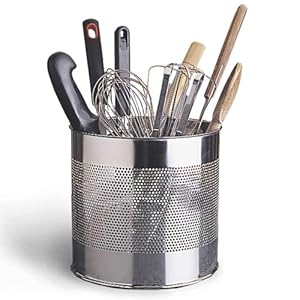 Handsome for holding spoons, spatulas and whisks, the RSVP Endurance Precision Pierced Tool Caddy has three interior compartments to keep tools upright and organized. The non-skid rubber base protects countertops. The precision piercing allows air to circ