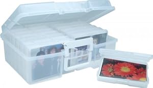 The Large Photo Keeper includes 16 individual photo cases that each hold 100 standard 4" x 6" photos. The cases are acid free and feature rounded corners and edges to protect your cherished memories. The keeper buckles down and has an easy carry handle for portability. The unit is also stackable with standard 6 Case Photo Keeper. Photos shown not included. Assembly level/degree of difficulty: No Assembly Required. Made in America