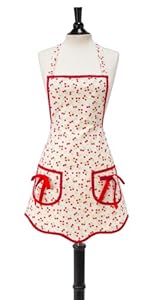 Heirloom quality Designer Hostess Apron constructed from a fine Cotton. Ties at neck and waist for easy adjusting. Contrast Bias-trimmed at edges. Two round-edged waist pockets with removable grosgrain bows gives this apron a dressed-up feel that makes it appropriate for not just cooking, but for any occasion!