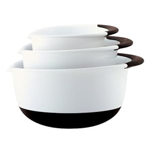 SoftWorks Mixing Bowls feature a non-slip wrap-around base that prevents skidding, even when the bowl is tilted. A comfortable, non-slip handle gives you a firm grasp for easy whisking and stirring. The wide lip and spout makes pouring neat and clean. The 5-quart bowl is ideal for doubling recipes or mixing larger quantities. SoftWorks bowls are dishwasher safe. Set includes: 1.5, 3 and 5-quart bowls