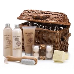 Every essential for a decadent at-home spa day is packed in this lovely lidded wicker basket! The rich, spicy scent of sandalwood adds natural appeal to moisturizing salon quality lotions, scrubs and bath crystals, all expressly collected for your ultimate delight. Set includes: 9.1 fl. oz. body lotion and cream bath, 5.0 fl. oz. body scrub, 2 bar soaps, 4 fizzers, wooden pumice nail brush, and willow basket. Weight 2.8 lbs. Set: 11 1/2" x 6 1/2" x 8" high when closed. Set.