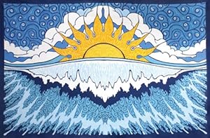 Featuring a bright wave and sun design, this tapestry measures 60 by 90 inches and is handmade from premium 100% cotton. Large wall hanging tapestry. Use as a bed cover, table cloth or beach blanket. It is thin like bed sheet material. Corners are looped for easy hanging 100% cotton or staking down on the beach. Just so there's no confusion, our tapestries are printed not quilted or woven; they're designed as wall hangings and not as fitted sheets, so they are designed to hang from walls, rather than with elastic bands for fixing them to sheets. Makes excellent decor and is equipped with specially designed corner-loops for easy hanging. Please Note: Our tapestries are printed on the front side only
